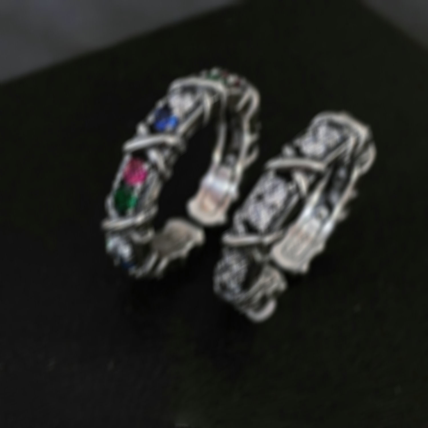 Personalized hip hop color zircon retro ring female temperament fashion rainbow open cross-border hot ring wholesale