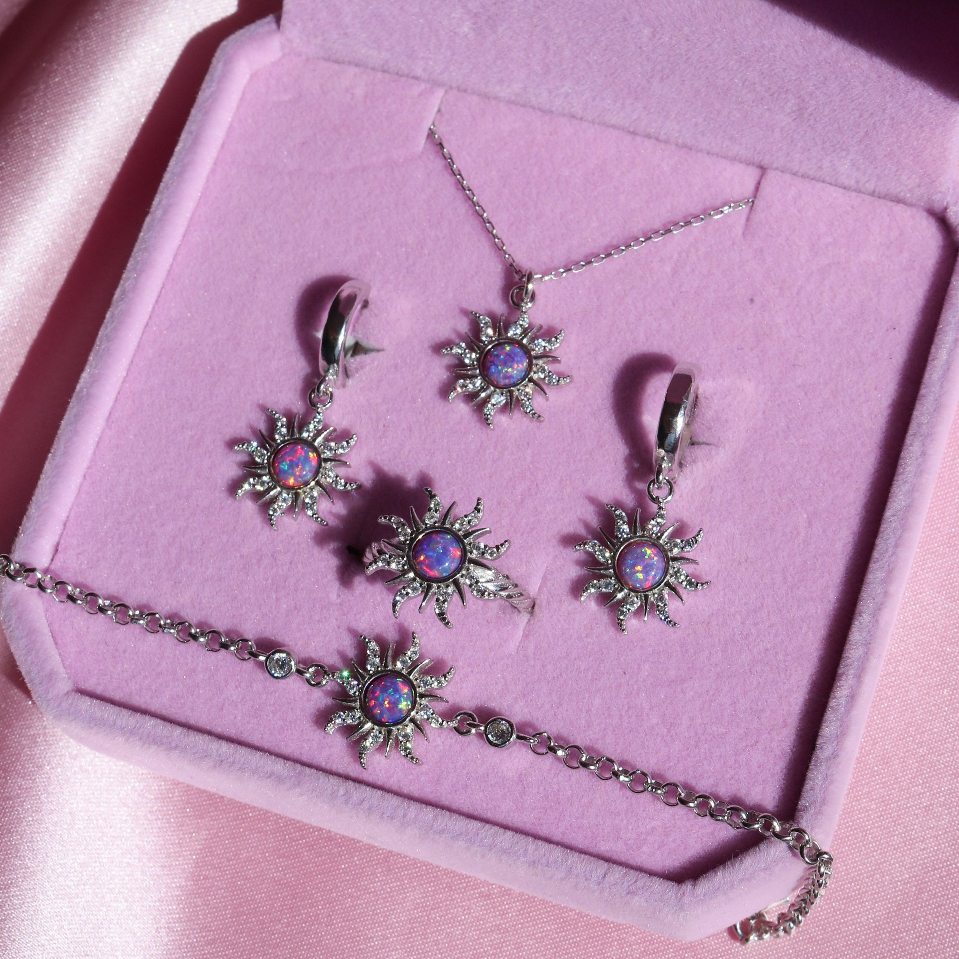 European and American Opal Necklace Vintage Dopamine Barbie Necklace Opal Pendant Cross-border Micro-inlaid Zircon Pendant