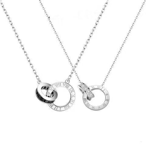 Time Lovers Double Ring Couple Necklace Women's 2023 New Fashion Light Luxury Ins Style Niche Design Clavicle Chain