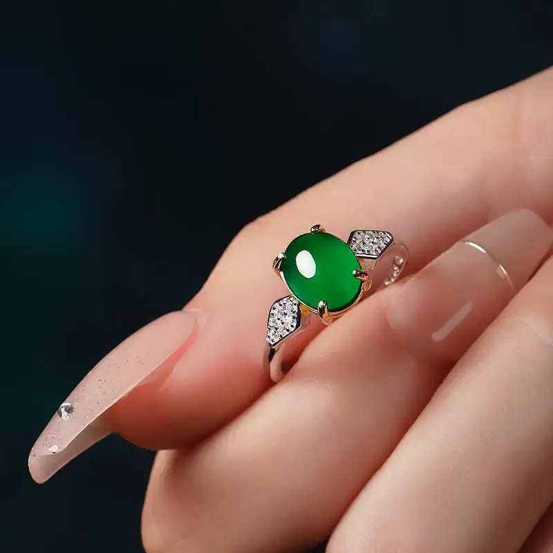New Chinese Style Luxury Big Egg Face Imitation Jade Ring Women's Light Luxury High-end Refined Finger Ring Adjustable All-match Bracelet