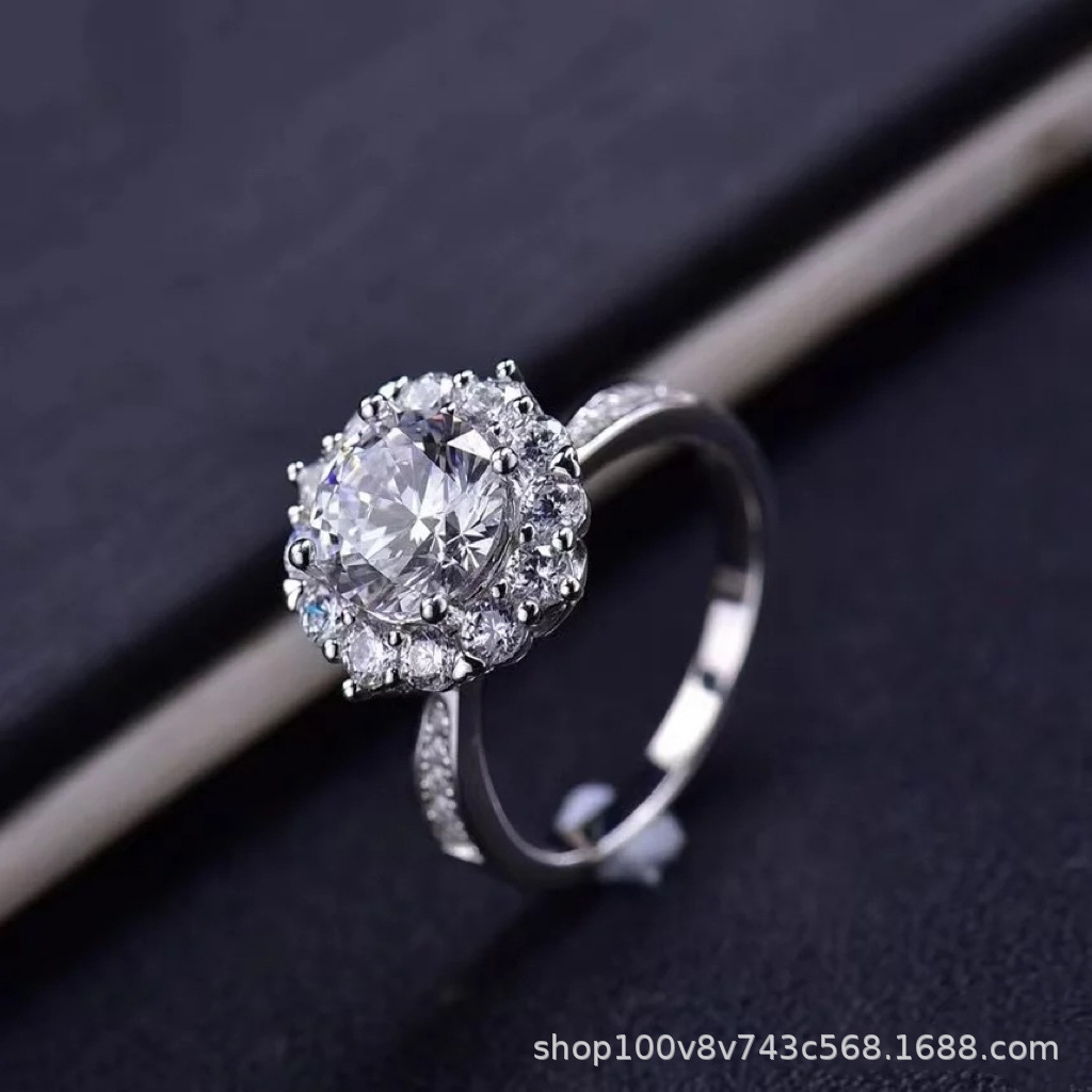Flash diamond six-claw ring women's fashion light luxury niche design ins style exquisite opening adjustable ring wholesale