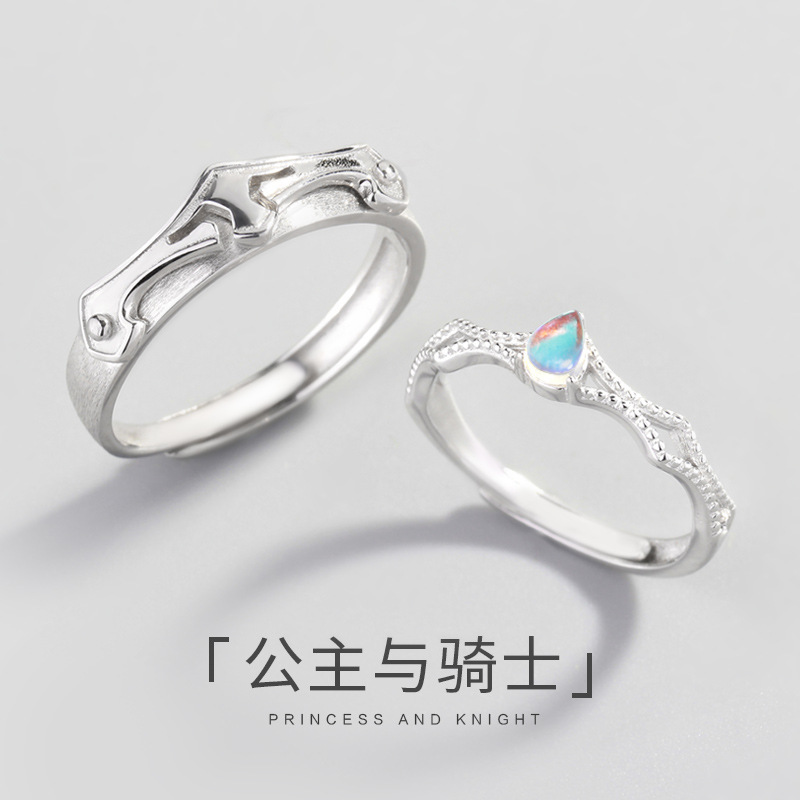 Runxin New Princess and Knight Couple Ring Men's and Women's Fashion All-match Ring for Men and Women Valentine's Day Commemorative Gift