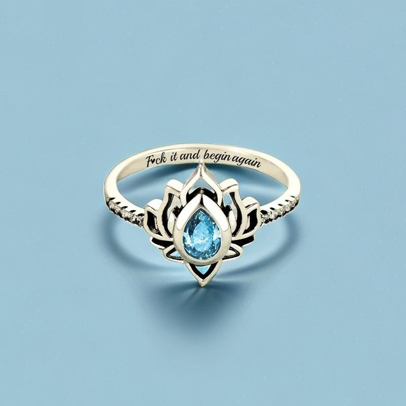 【R0669-Bl-S925】Blue Diamond Lotus Ring