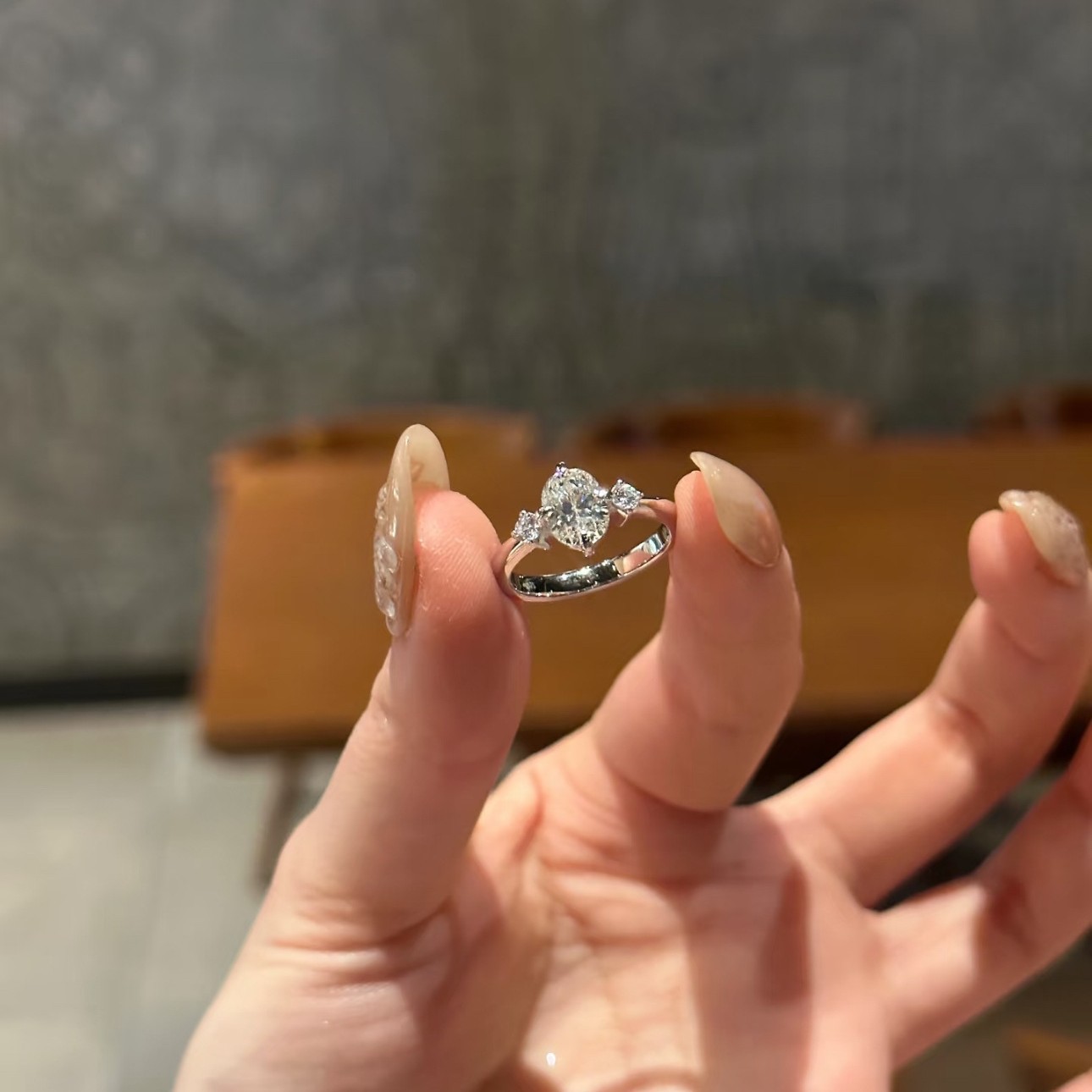 New French-Style Suspended Pigeon Egg Ring for Women, Vintage Cool Oval Sparkling Large Diamond Ring, Adjustable