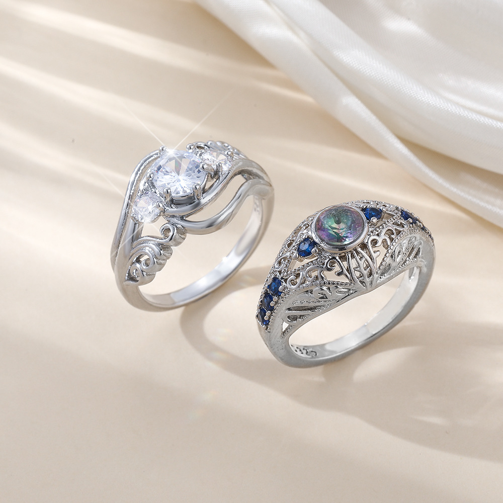 Weiya European and American-style hot-selling fashion hollow carved copper material inlaid colored zircon vintage ring women's wholesale