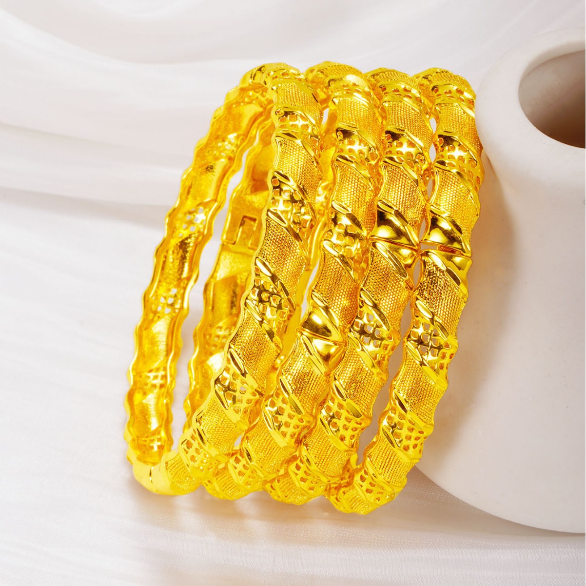 Huixing 24K Gold Buckle Bracelet Women's Fashion Cut Out Stylish Honeycomb Pattern Hand Jewelry Mei Long Accessories Wholesale