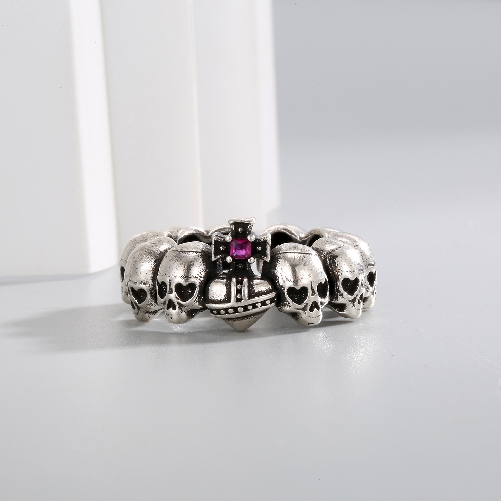 Cross-border Retro Distressed Notre Dame Ring Men's Inlaid Blackstone Live Men's Personality Hip-hop Trendy Punk Ring Men