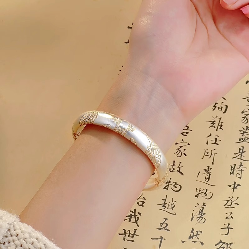 Shake Voice Live White Copper Silver Plated Ancient Method Gold Dragon Bracelet Inheritance Closed New Chinese Zodiac Women's Chinese Bracelet