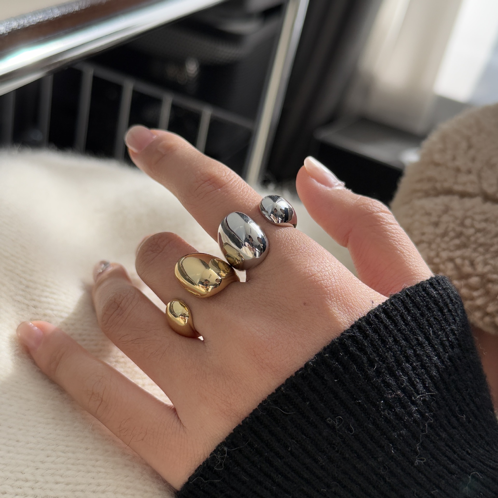 New Fashion Heavy Industry Water Drop Design Ring Women's Ins Niche Design All-match Bracelet Fashion Textile Food Finger Ring