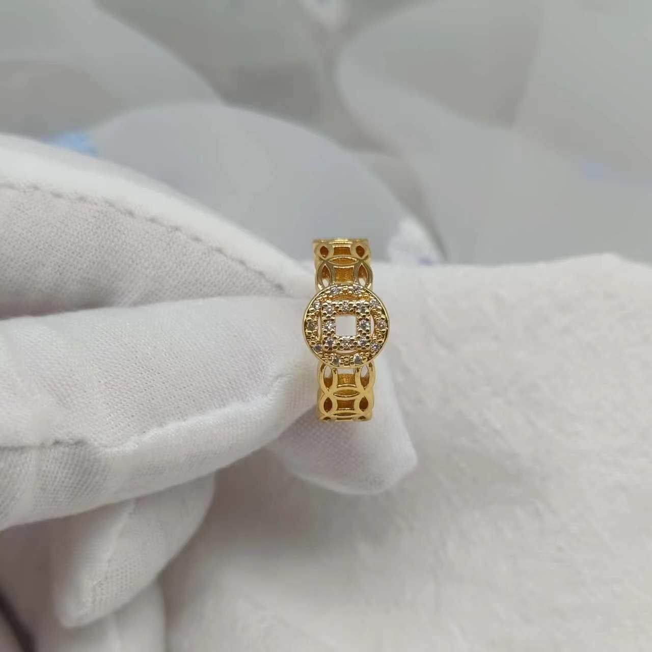 Shake Voice Live Cross-border Money Copper Ring Women's Ins Simple Hollow-out Design Lucking Transfer Coin Ring