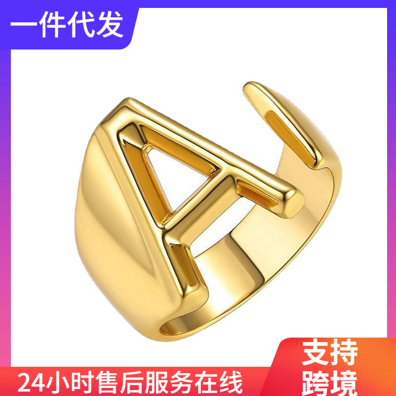 New Amazon hot sale bracelet English letter brass ring female electroplated real gold adjustable ring 26 opening
