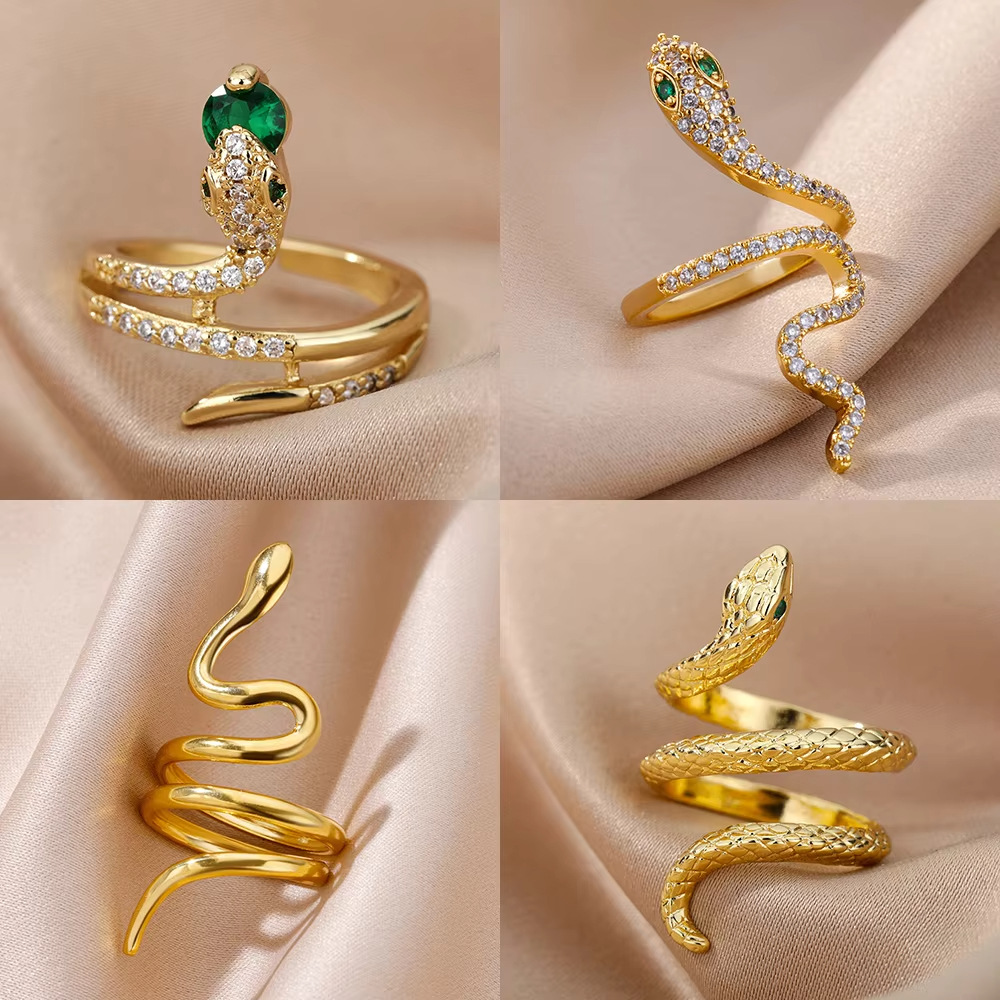 European and American Personalized Cross-Border Retro Snake-Shaped Ring Opening Adjustable Animal Ring Light Luxury Zircon Hand Jewelry
