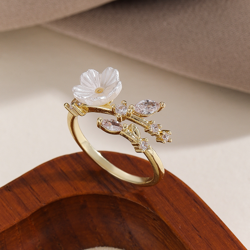 Cross-Border Foreign Trade Korean Style Copper Inlaid Zircon Flower Ring Women's Copper Plated Real Gold Fashion Simple High-End Jewelry