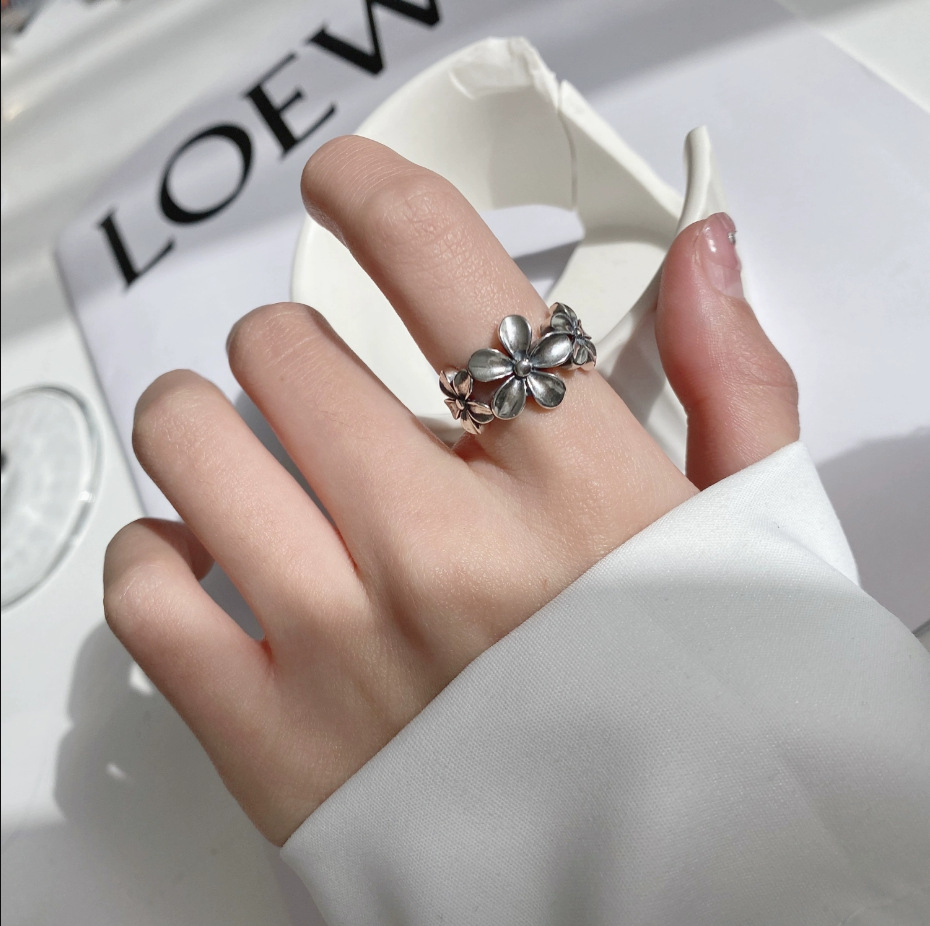 ins Flower Flower Opening Ring Women's Light Luxury Niche Design Exquisite Fashion Personality High-end Retro Thai Silver