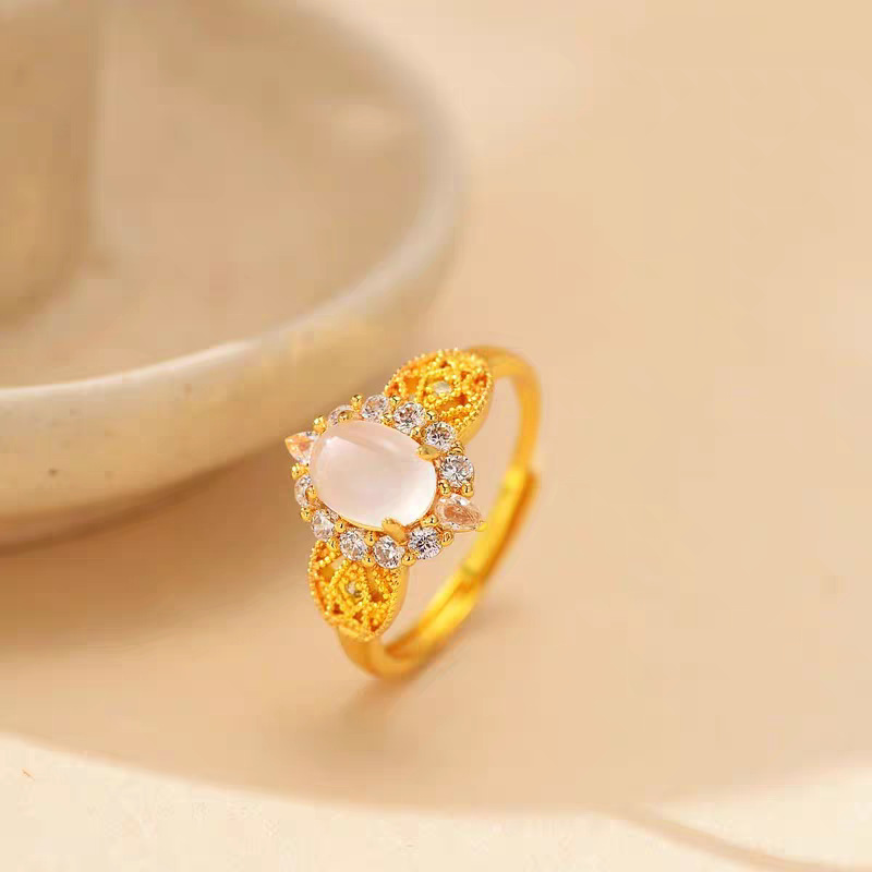 New Chinese-Style Gold-Plated Dazzling Diamond-Shaped Egg Surface Ring, Gilt Vintage Retro Style Inlaid Women's Index Finger Ring Batch