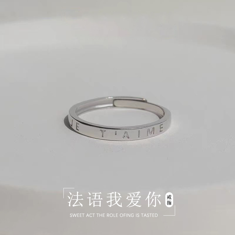 French I Love You Ring Female Niche Design Plain Ring Letter Fashion Cold Style High-End Ring for Girlfriend