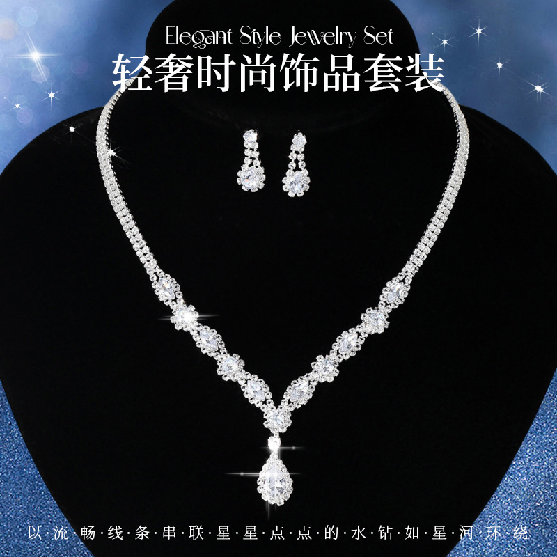 Fashion Retro Simple Rhinestone Bridal Jewelry suit Necklace Earrings Dress Banquet Accessories