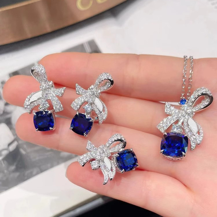 Light Luxury Super Fairy Butterfly Pendant Necklace Inlaid Simulation Royal Sapphire Ring Blue Diamond Earrings Color Treasure suit Women