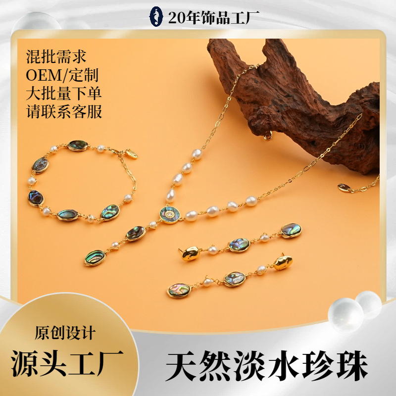 Cross-border Minimalist Natural Abalone Shells Patch Flower Jewelry Set Real Gold Electroplating Seaside Holiday Style Jewelry