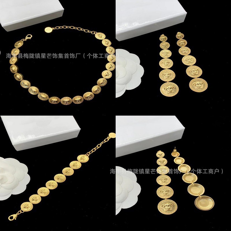 Fanjia Necklace/Fjia Medusa Head Necklace European and American Trendy Earrings Brass High-Quality Cross-Border Jewelry Set