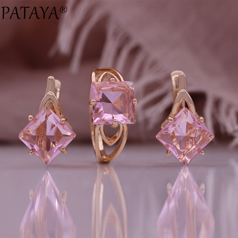 PATAYA New Square micro set blue zircon ring earrings set 585 rose gold plating high quality set