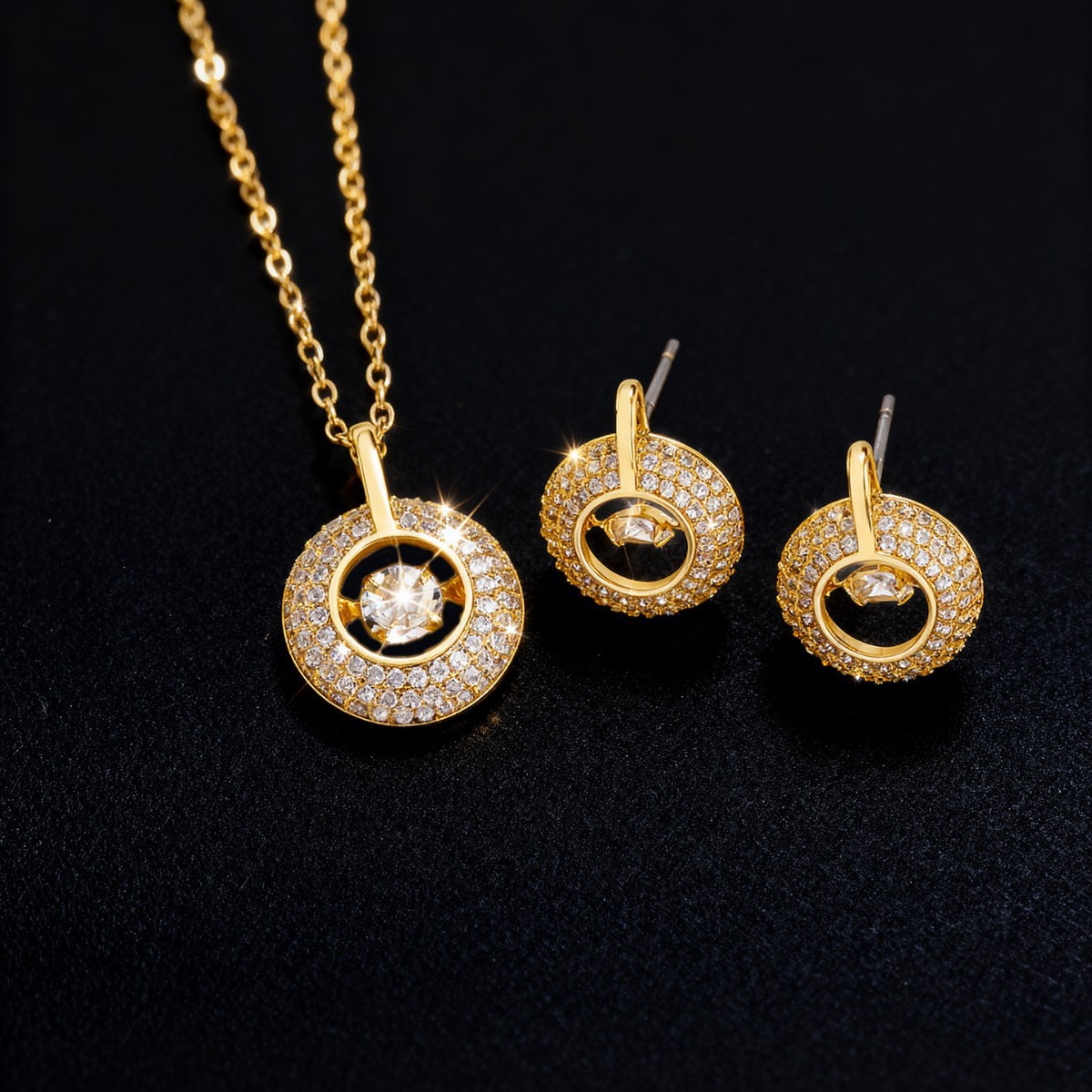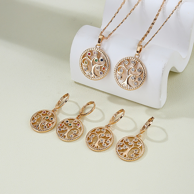 Cross-Border Light Luxury Fashion European and American Copper Inlaid Zirconium Round Design Set Niche Design High-End Jewelry