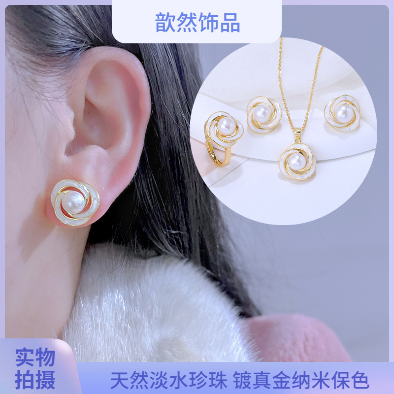New Style Pearl suit High-end Women's Necklace Cyber Celebrity Pearl Pendant French Light Luxury Niche Jewelry suit