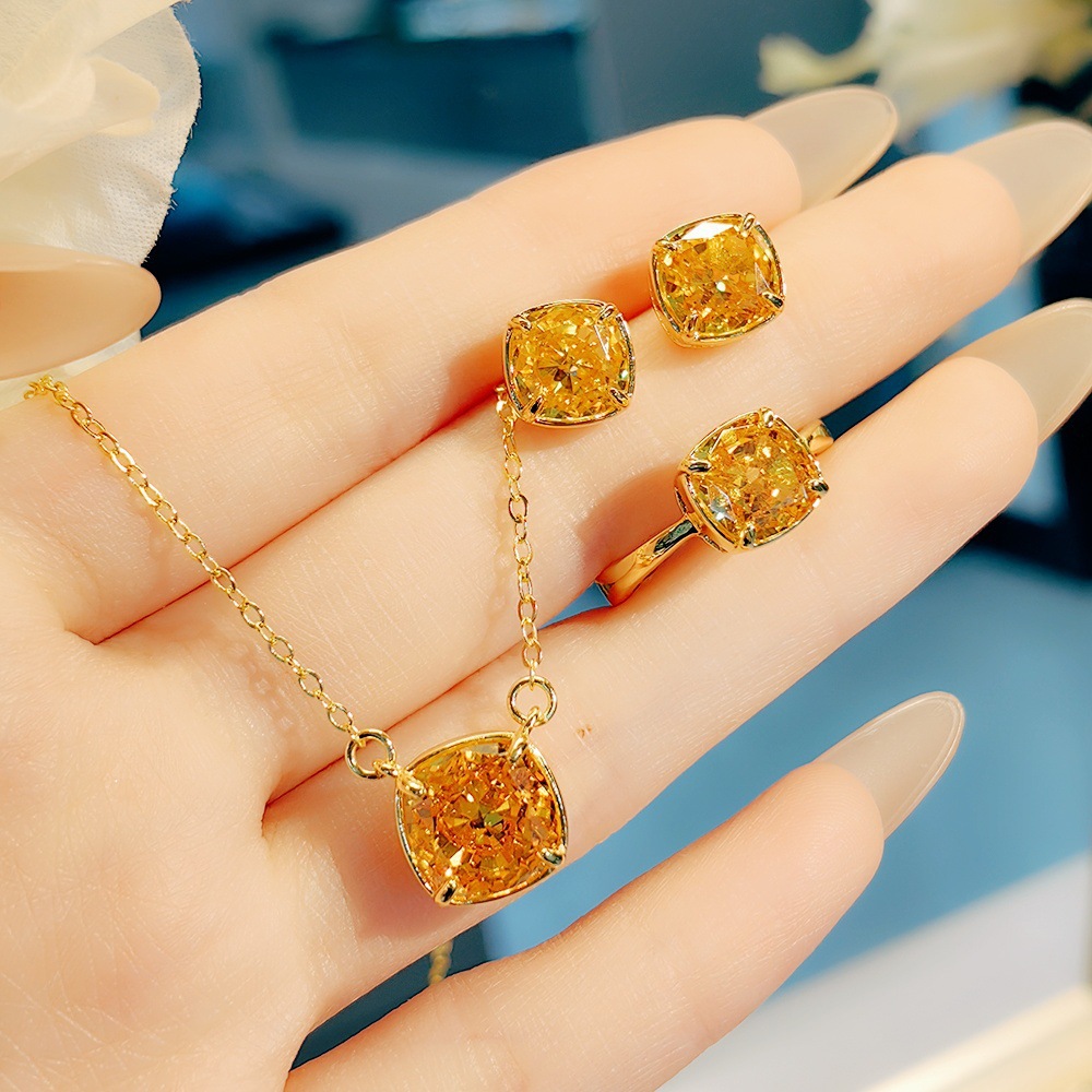 Jewelry Women's High-End Three-Piece Set, Light Luxury Style Jewelry Women's High-End Set, European and American Colored Gemstone Rings, Earrings and Pendants