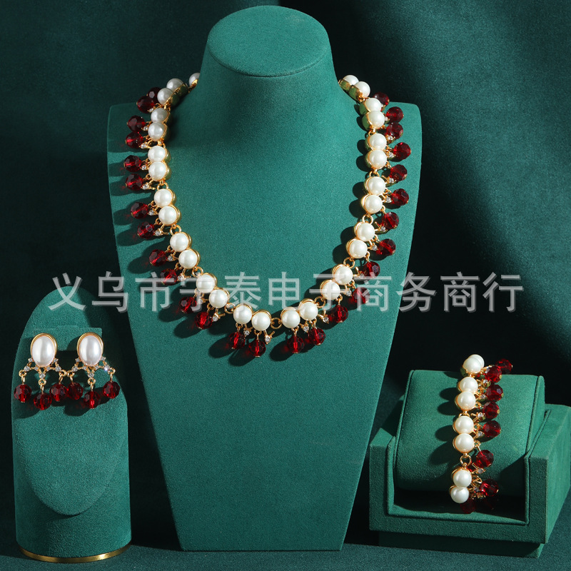European and American Bridal Jewelry Necklace Earrings Jewelry Set Banquet Dress Set Chain Elegant Accessories Wholesale Ins Style