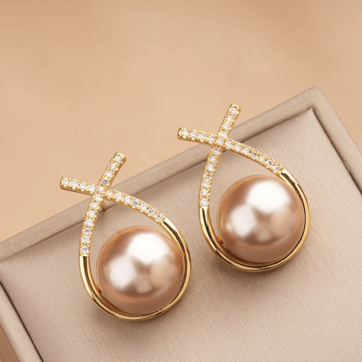 Douyin Live Broadcast Champagne Pearl Earrings Necklace Set Feminine New Trendyy High-End Fashion Zircon Earrings