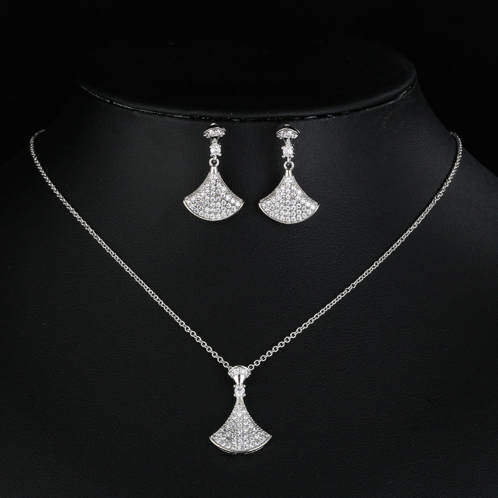 All-Match Fashion Classic Full Diamond Small Skirt Necklace Women's ins Elegant Light Luxury AAA Zircon Clavicle Chain Set