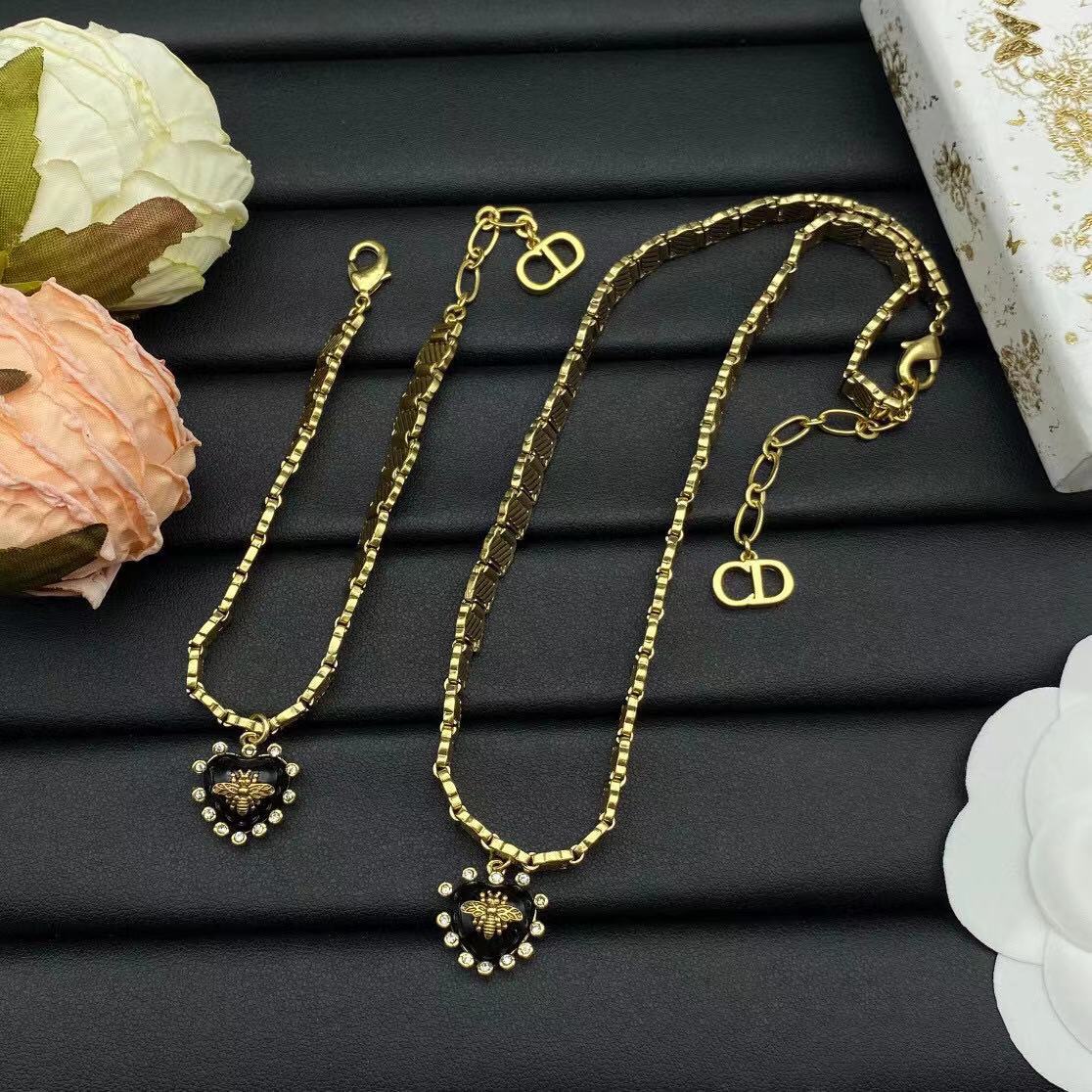 Dijia Cd Letter Pig Nose New Diamond Necklace Bracelet Set European and American Retro Style Honey Bee Acrylic Accessories