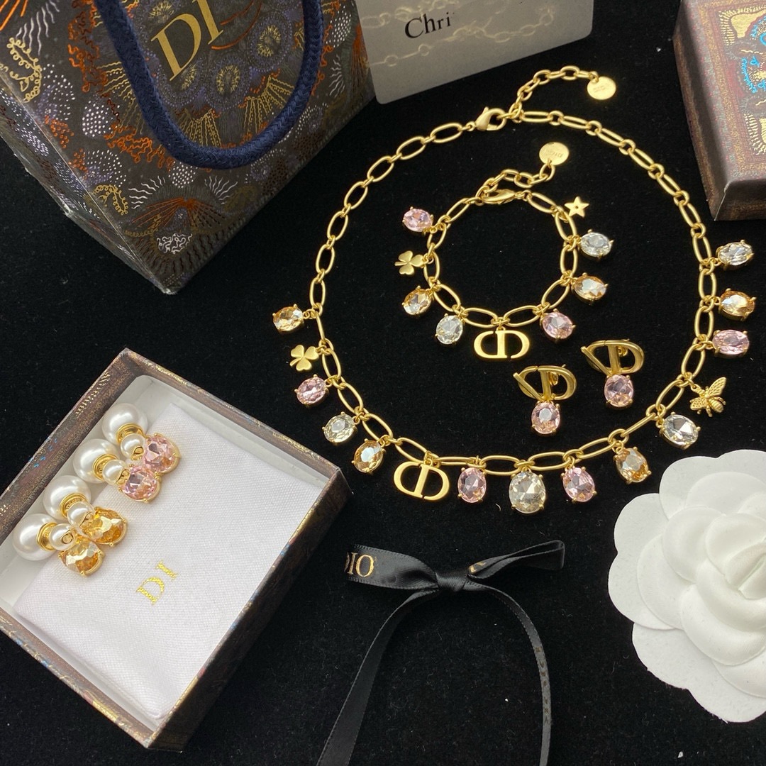 Dijia suit Letter CD Necklace Bracelet Female Rhinestone High Sense Retro High Sense Temperament Net Red Ear Line Wholesale