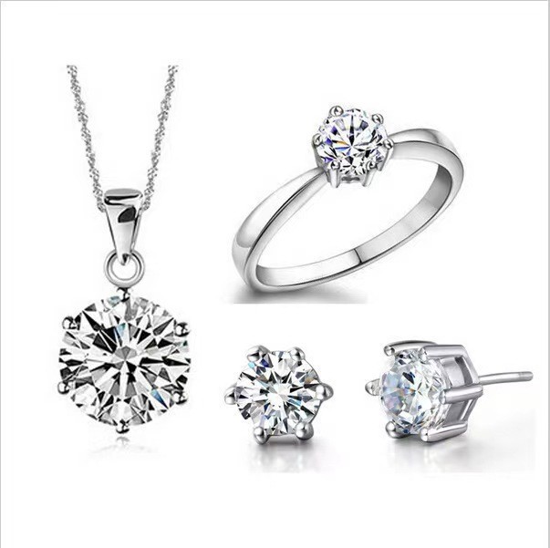 Women's jewelry suit imitation moissanite couple wedding ring six-claw ring necklace ear studs live supply one-piece delivery