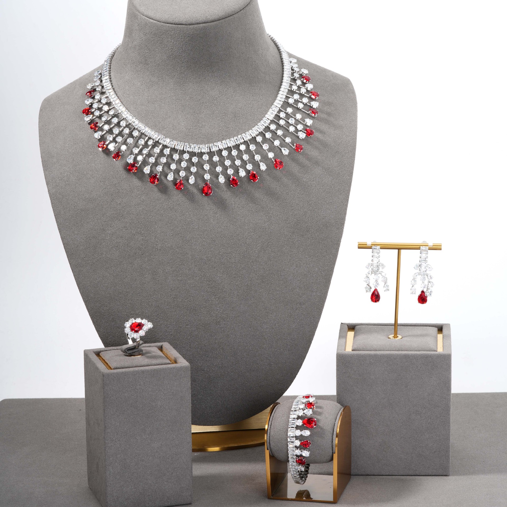 Heart-shaped Jewelry Ruby Necklace Pendant Earrings Ring Set Three-piece Light Luxury Explosive Internet Celebrity Heart-shaped Fashion