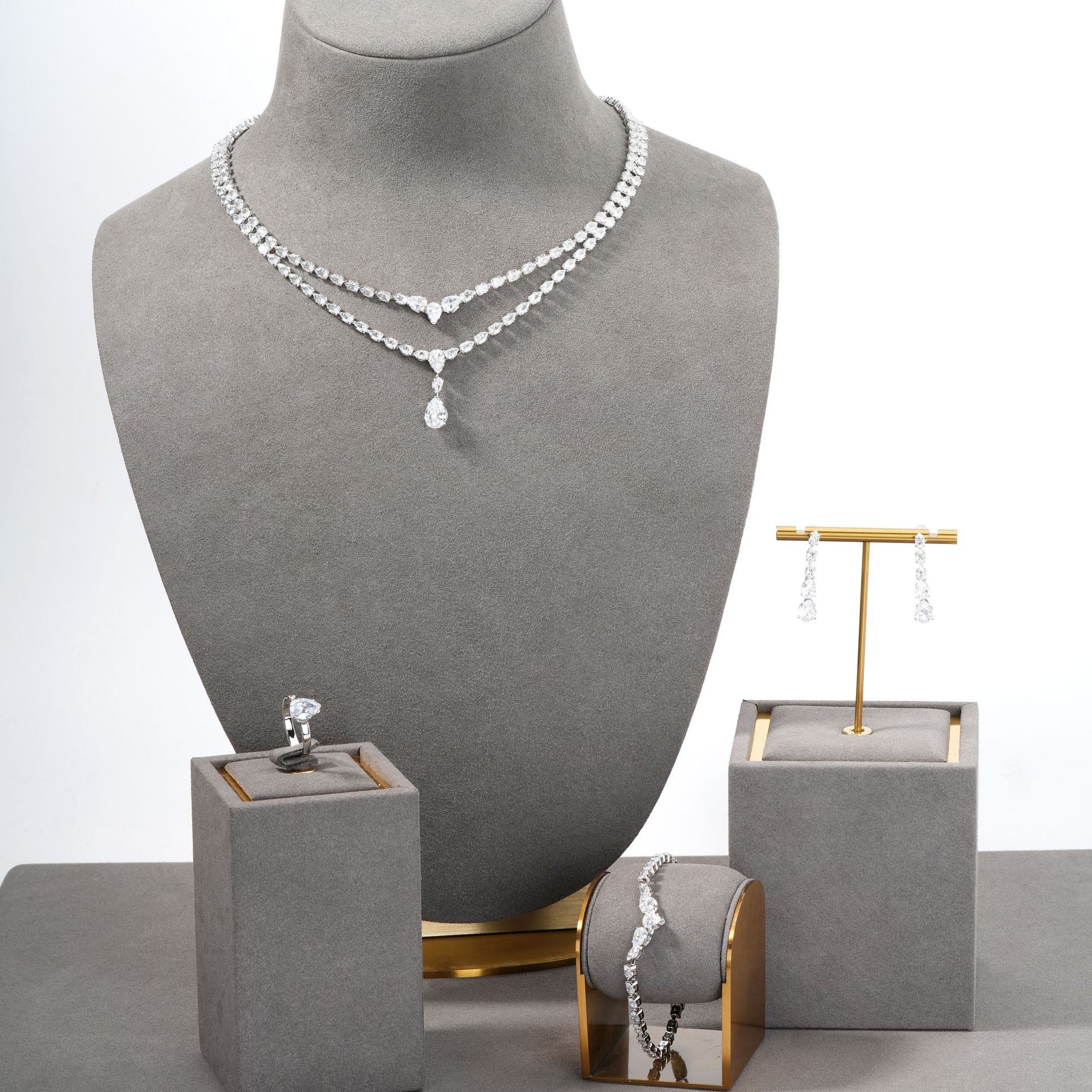 Kérastase Autumn Cross-Border New Ins Style Light Luxury Design Water Drop Zircon Necklace Bracelet Earrings Ring Set
