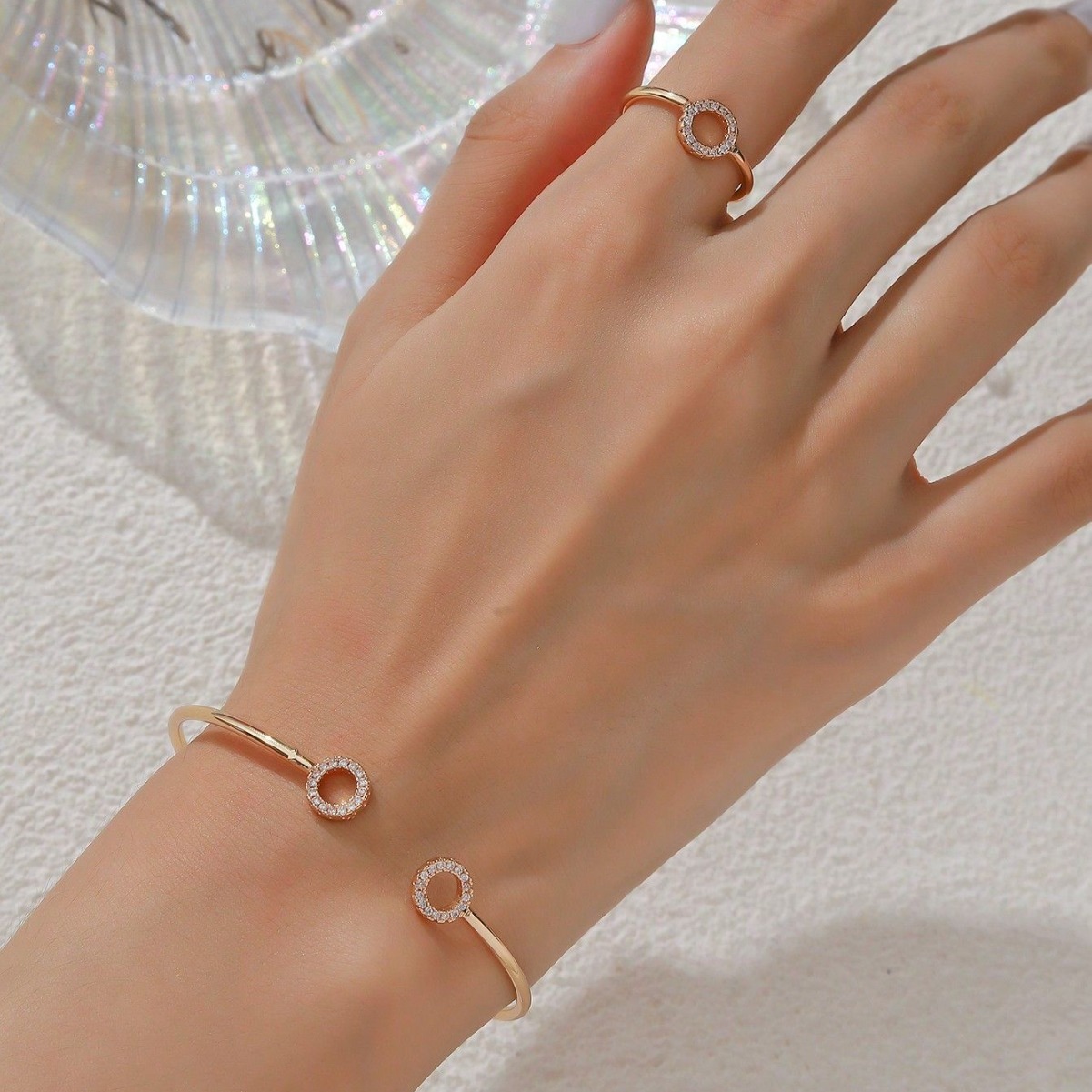 Cross-border new bracelet full diamond circle open bracelet open ring suit luxury elegant simple bracelet