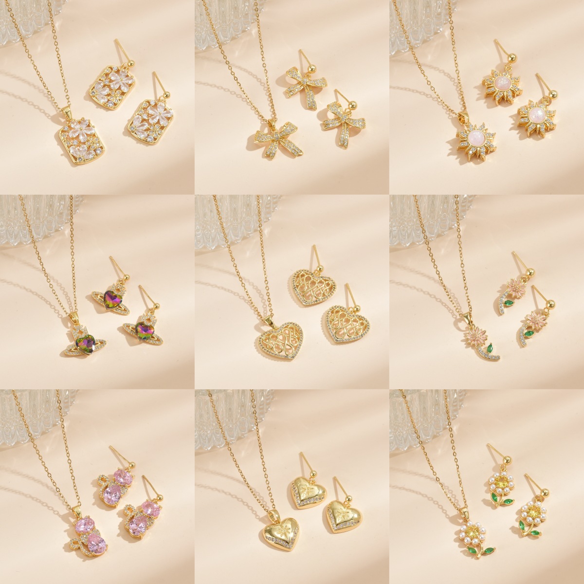 Cross-border Love Synthetic Zircon Two-piece Sweet Fresh Refined Elegant Earrings Necklace e710-x703