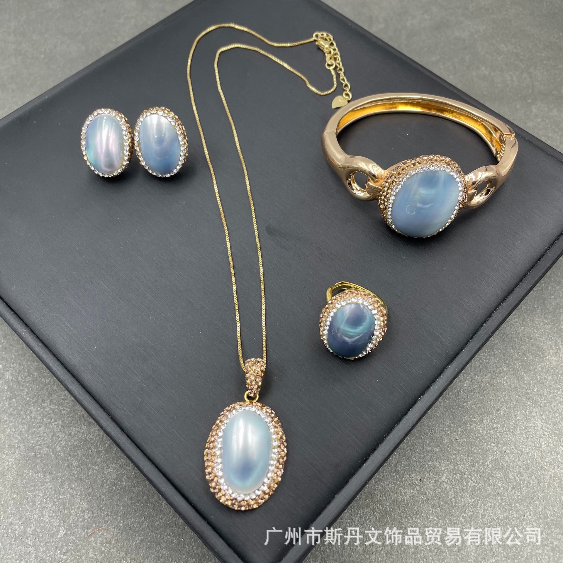 New suit jewelry manufacturers in stock necklace earrings Millennium Para green stone fashion Joker women's wholesale