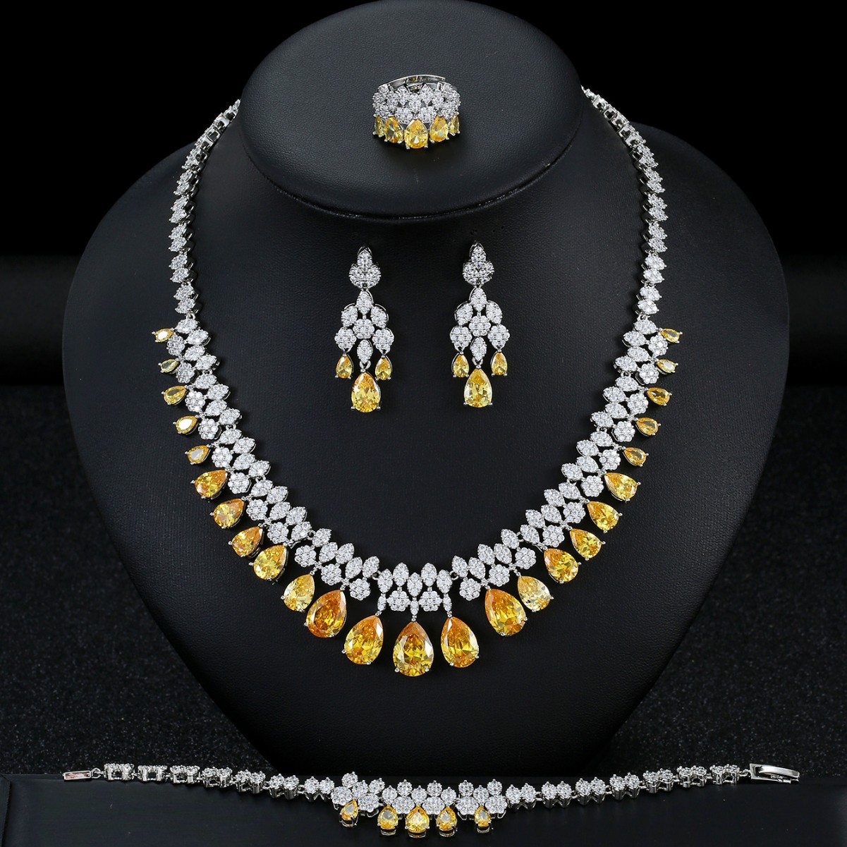 Vina European and American Bridal Zircon Necklace Earrings Bracelet Ring Set Wedding Dress Dinner Accessories Ladies Holiday Pendant