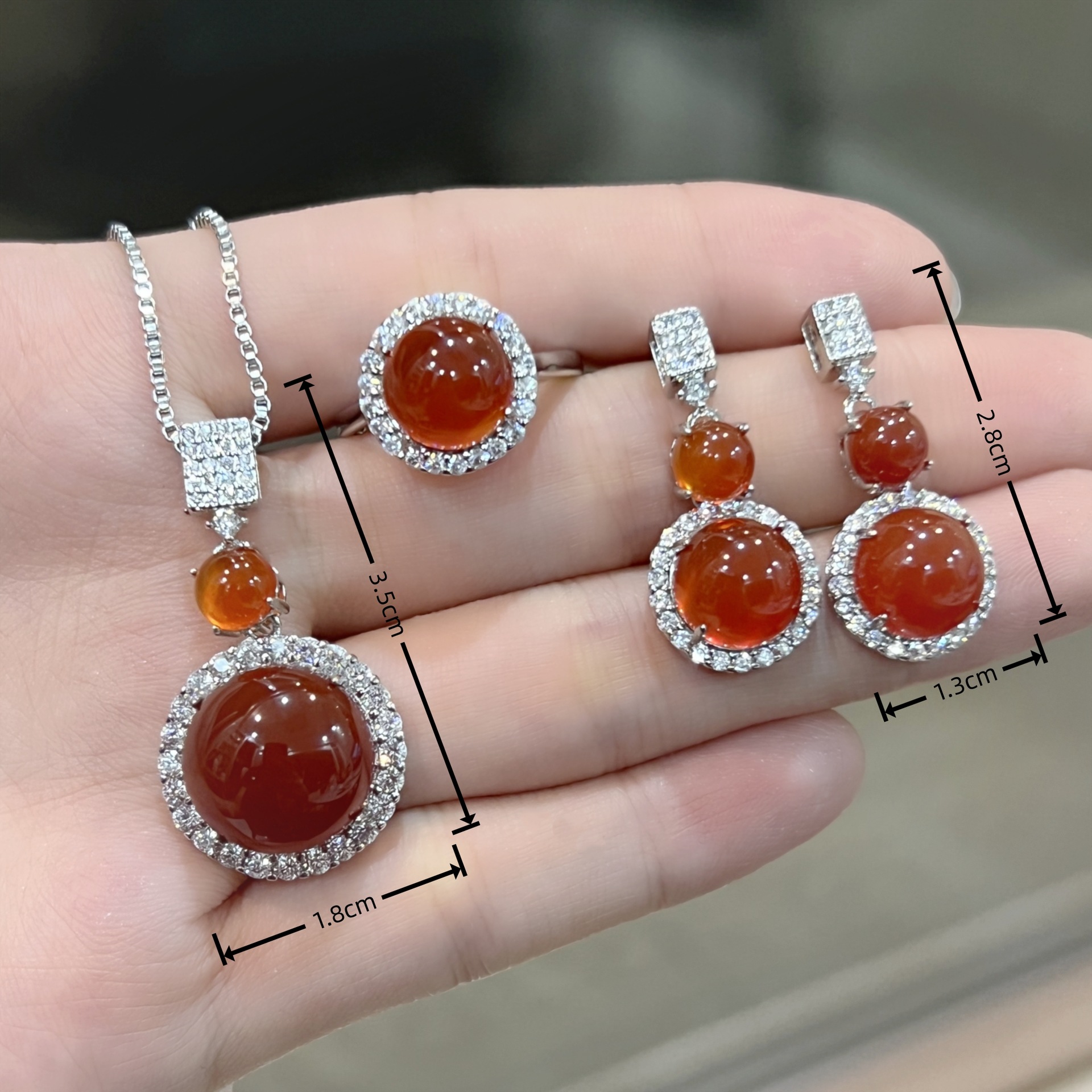 Natural Yellow Red Chalcedony Fruit Brocade Earrings Earrings Ring Pendant Necklace High-End Noble Fashion Set
