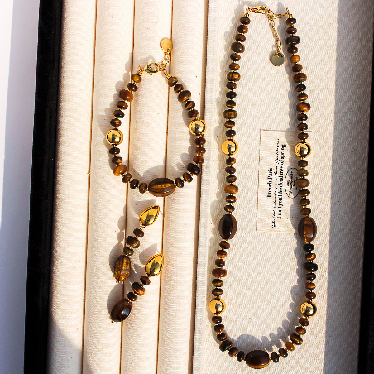 Baoli Original Retro High-End Natural Tiger Eye Stone Gold Ball Beaded Necklace Bracelet Water Drop Earrings Set 798