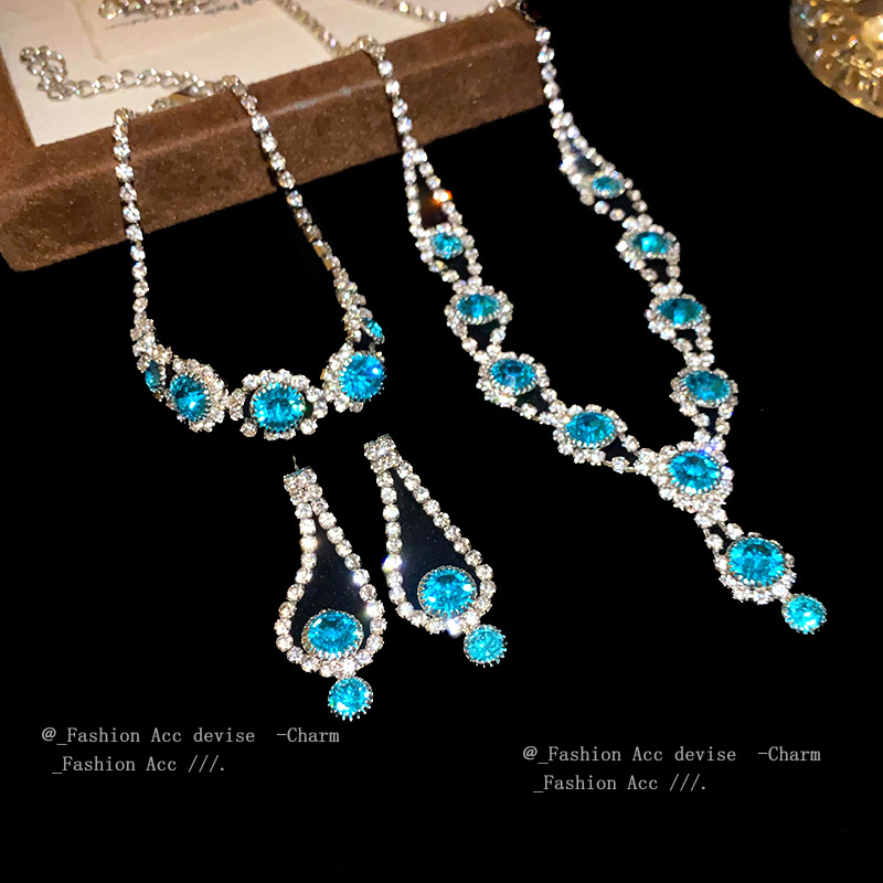 Cross-border Hot suit Jewelry Temperament Classic Crystal Zircon Love Necklace Earrings Wedding Dinner Accessories