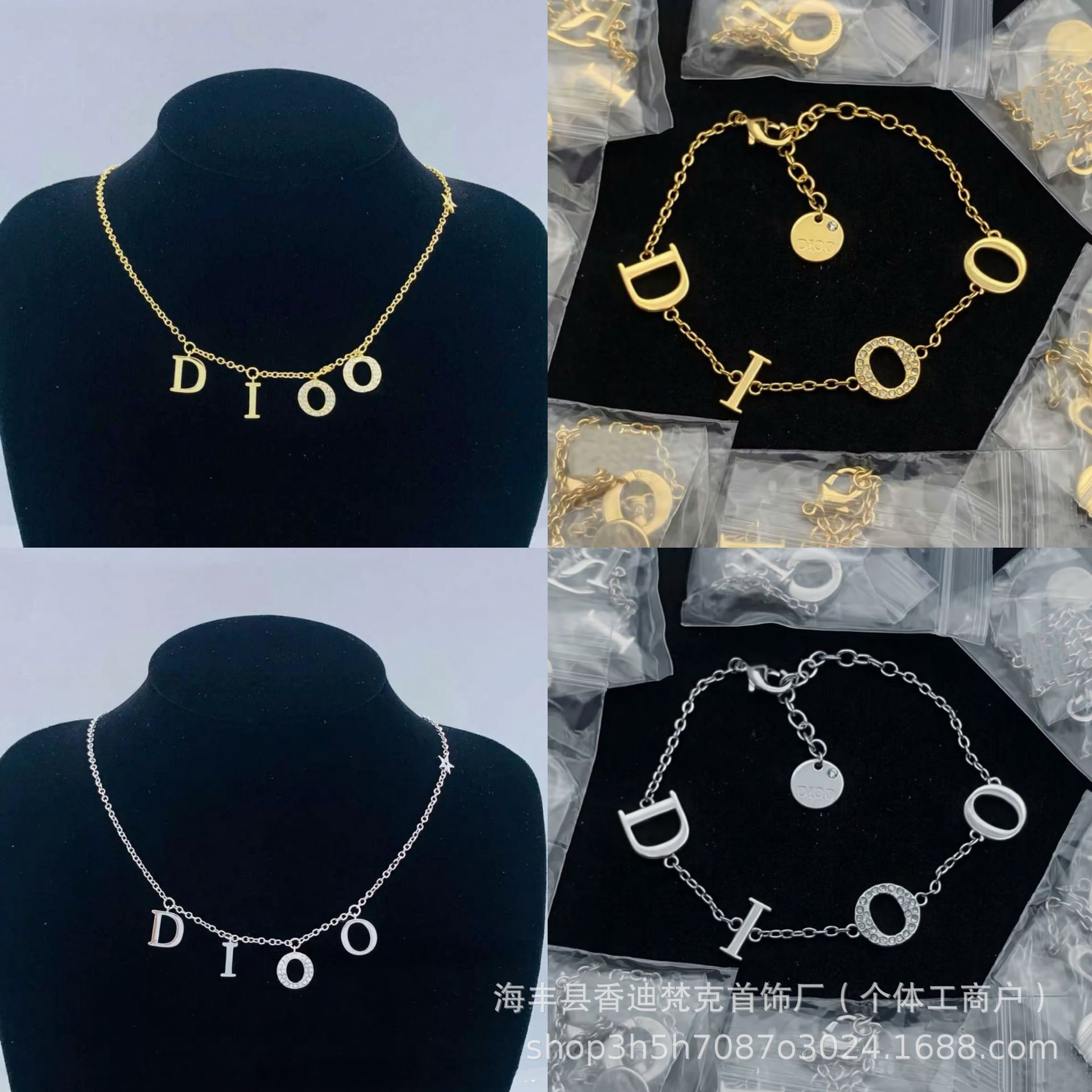 Manufacturer Wholesale Cd Letter Bracelet Necklace for Women Cross-Border Classic Four-Letter Xiaohongshu Same Style High-Quality Set