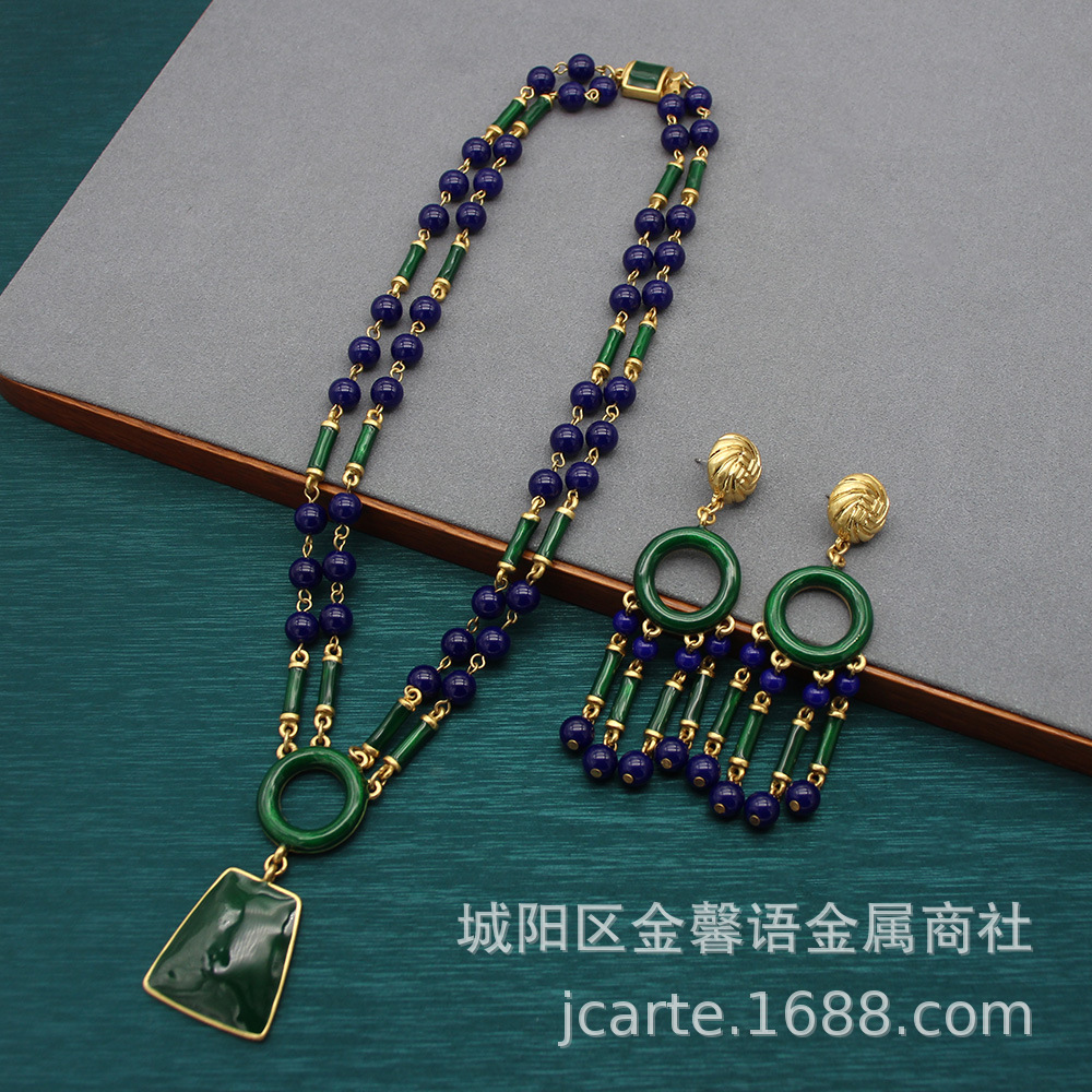 Jinxinyu Middle Ancient Wholesale Green No Matter Lapis Lazuite Enamel Earrings Baojia Booklet Necklace Earrings suit