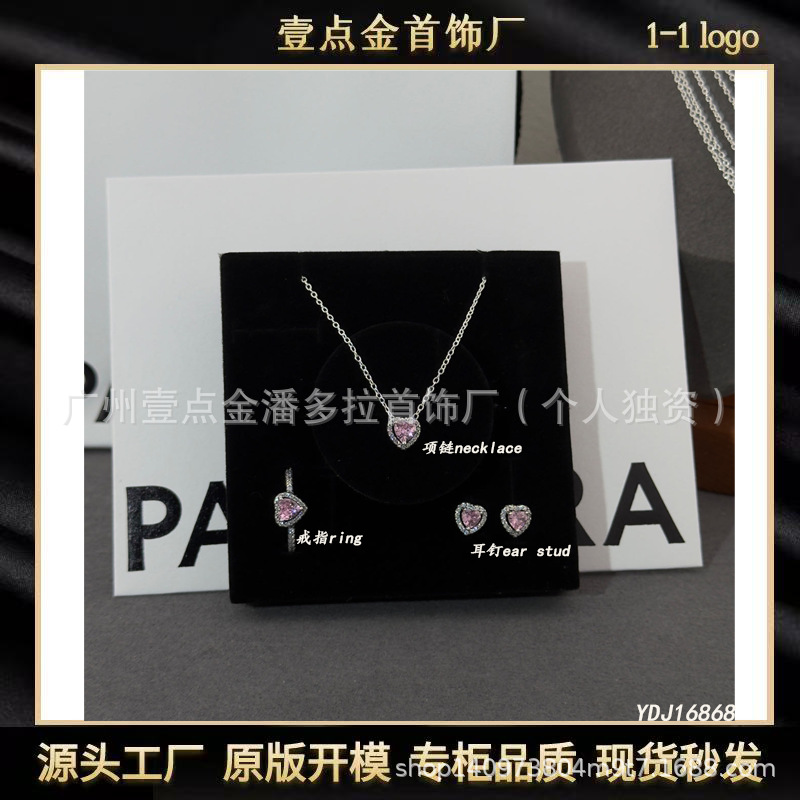 Panjia Three-Piece Jewelry Set Color Diamond Series Pink Diamond Ring Necklace Earrings Set Simple High-End Cross-Border Hot