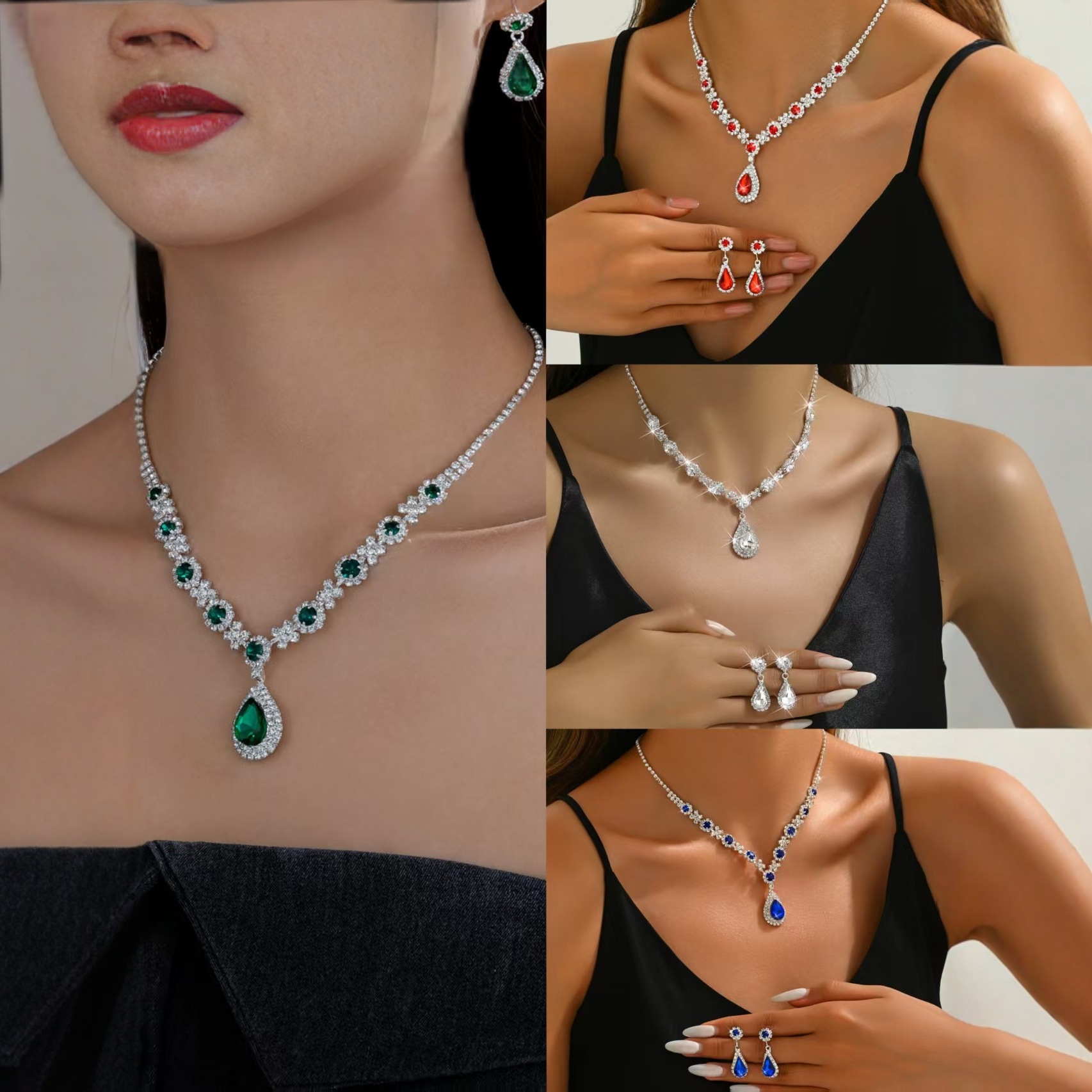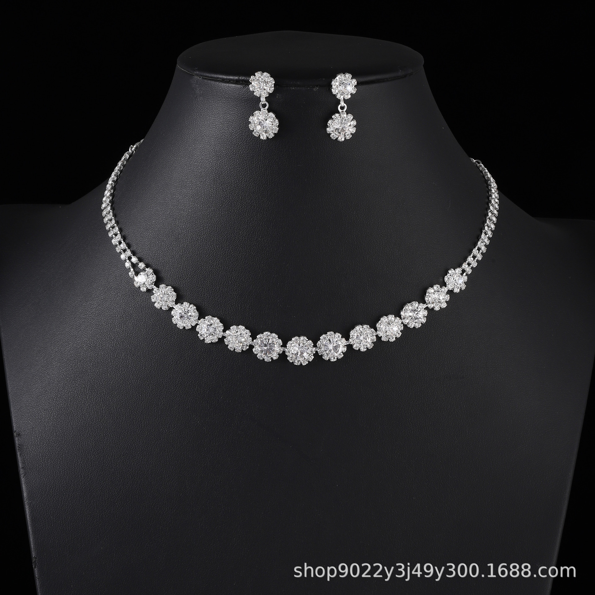 Cross-border supply European and American Internet celebrity rhinestone chain Women's personality simple all-match necklace earrings suit factory direct sales