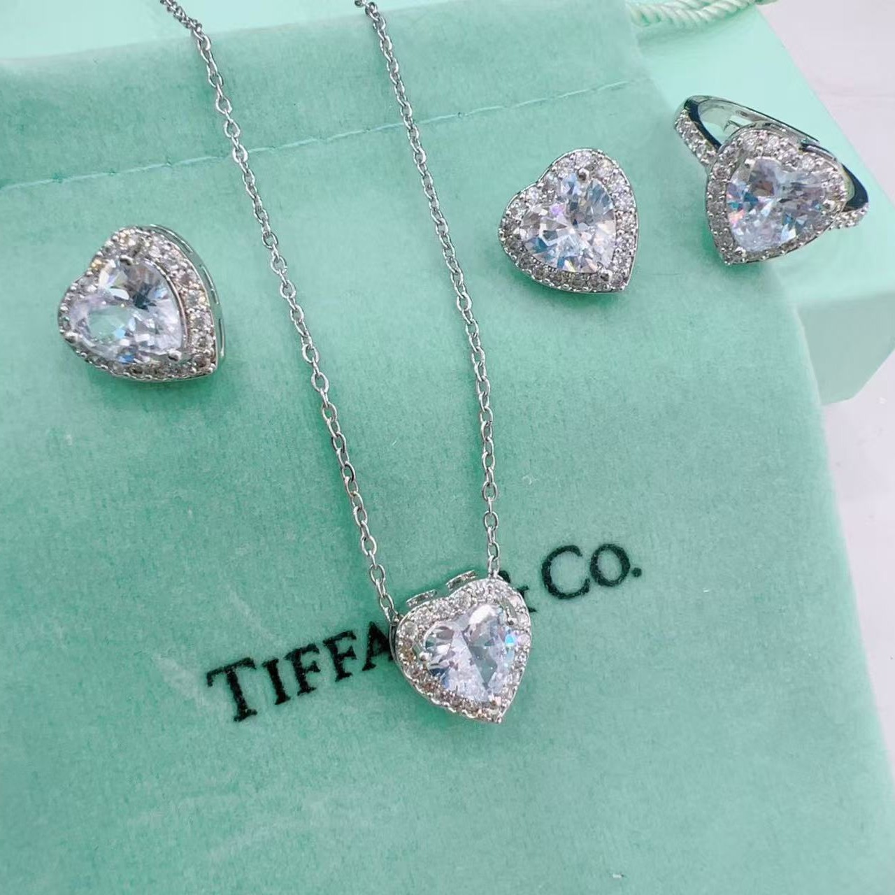 Cross-border Foreign Trade Hot Sale White Copper Silver Plated Panjia Love Series Tiff suit Women's Necklace Earrings Ring