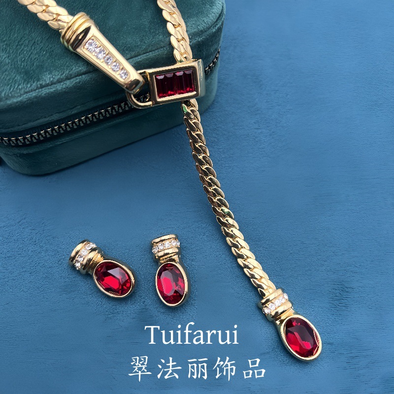 Europe and the United States new color treasure suit garnet red zircon ring earrings necklace all-match temperament pendant orange ruby