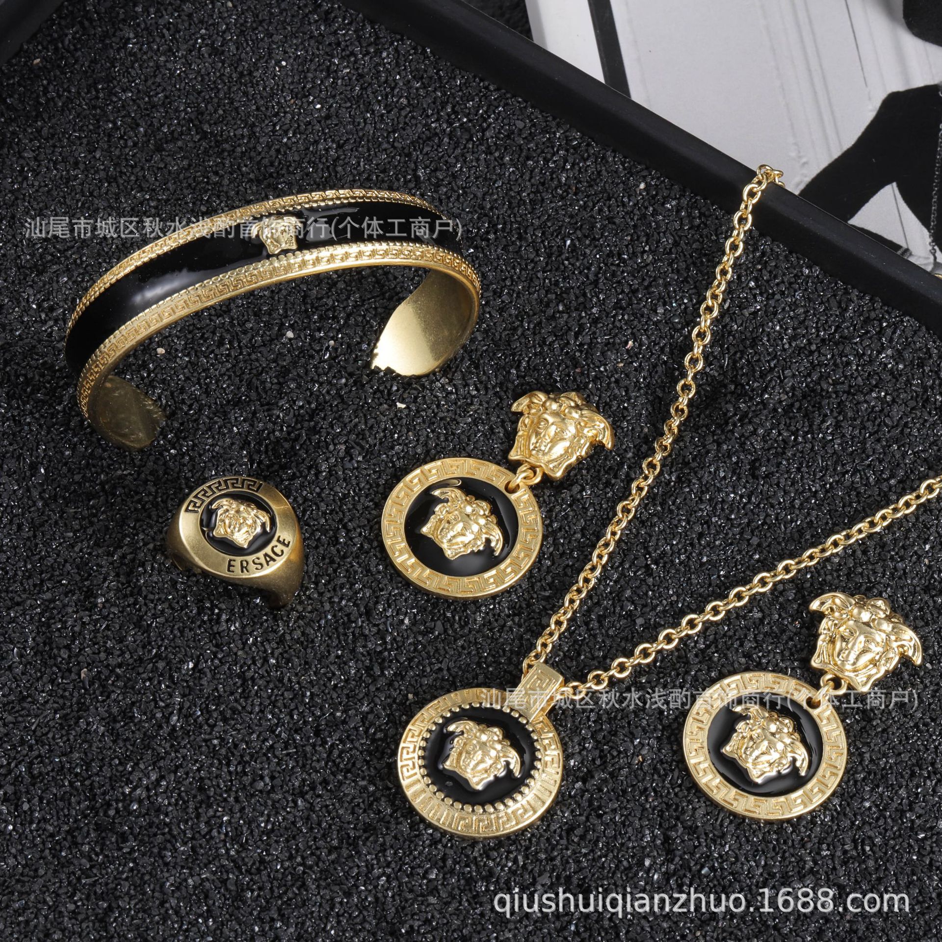 Fanjia Medusa Epoxy Bracelet Women's European and American Retro Silver Needle Earrings High-End Open Ring Necklace Set